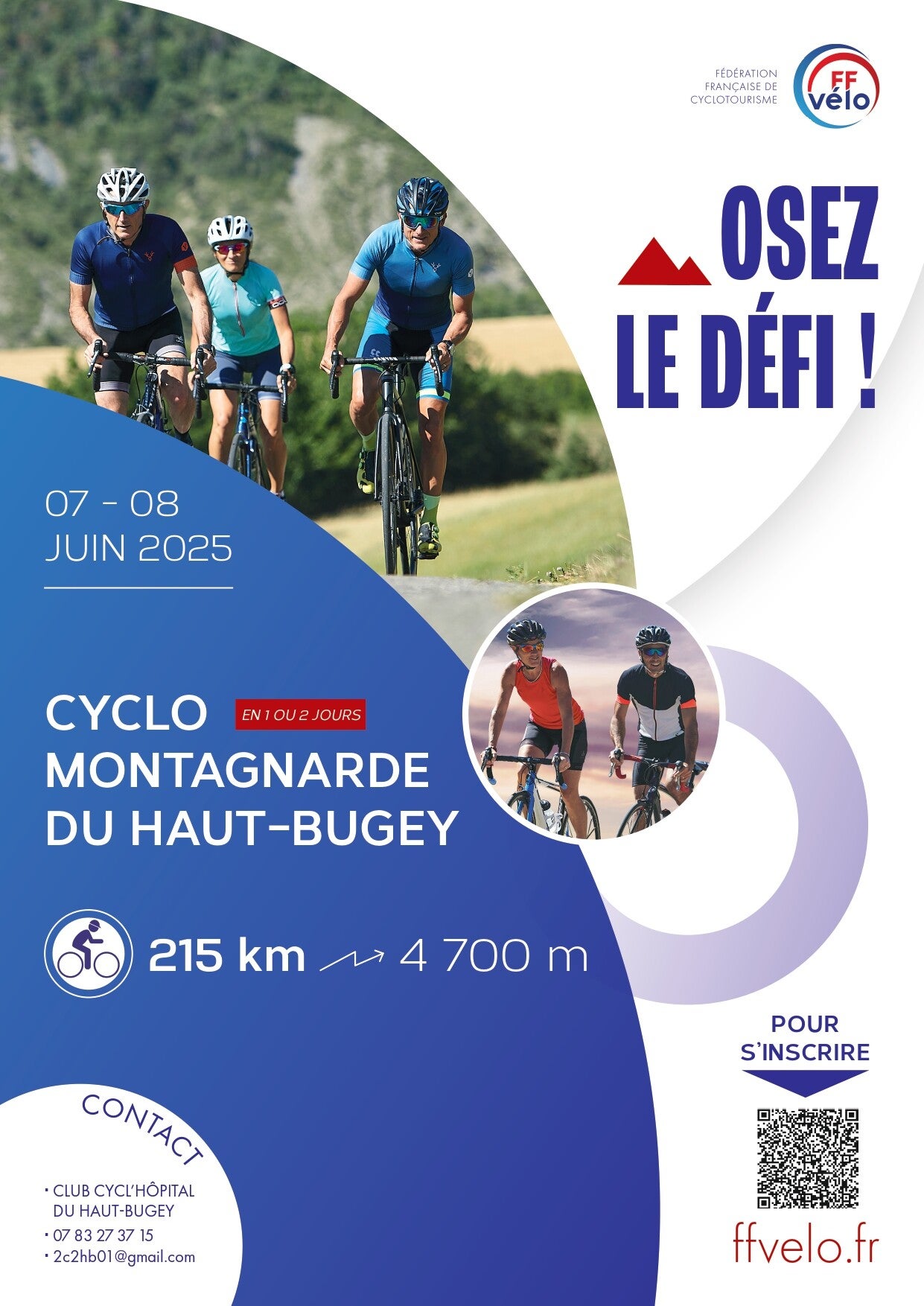 Restez informé des événements cyclistes incontournables organisés par le Club Cycl'hôpital du Haut-Bugey. Découvrez les dates, lieux et parcours de nos défis et randonnées. Préparez votre saison et rejoignez-nous pour des moments de partage et de dépassement de soi sur les routes et chemins du Haut-Bugey.
